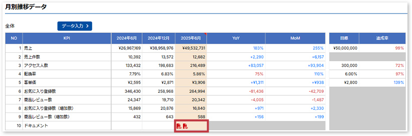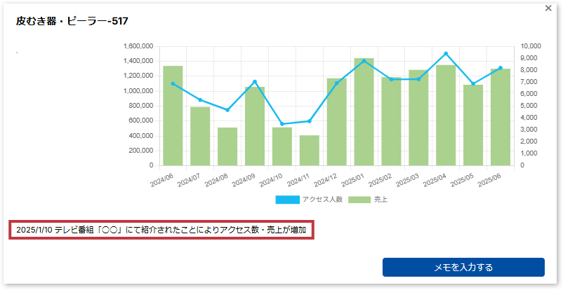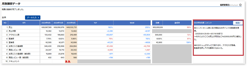 6.月ごとの施策や課題を自由に記録できるコメント機能