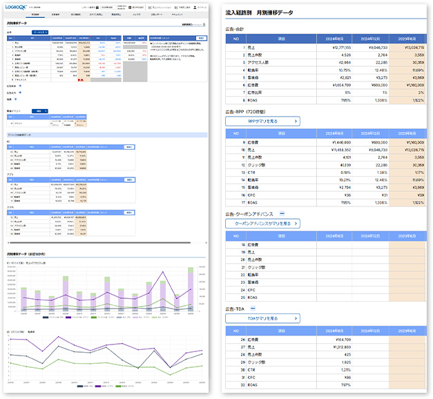 売上推移や広告効果を直感的に把握し、データに基づく迅速で的確な意思決定を支援します。